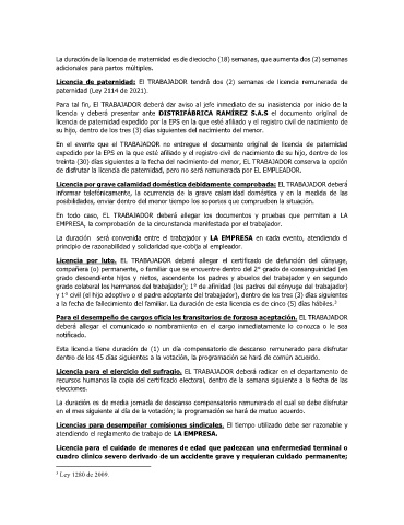 Licencia de paternidad: El TRABAJADOR tendrá dos (2) semanas de licencia remunerada de