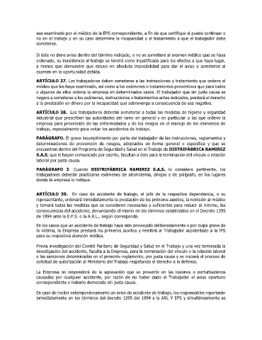 encuentren dentro del Programa de Seguridad y Salud en el Trabajo de DISTRIFÁBRICA RAMIREZ
