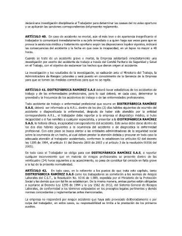 ARTÍCULO 41. DISTRIFÁBRICA RAMIREZ S.A.S deberá llevar estadísticas de los accidentes de