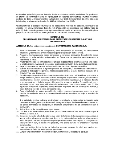 ARTÍCULO 48. Son obligaciones especiales de DISTRIFÁBRICA RAMÍREZ S.A.S: