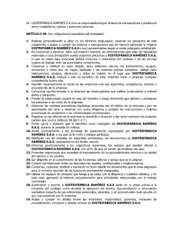 14. DISTRIFÁBRICA RAMÍREZ S.A.S no se responsabilizará por dineros de transacciones o préstamos