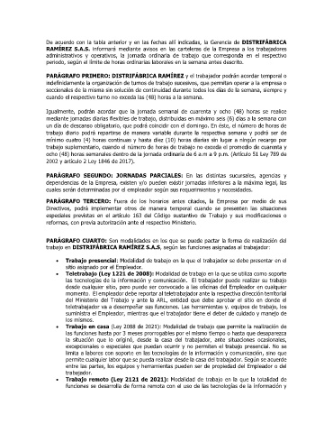 PARÁGRAFO PRIMERO: DISTRIFÁBRICA RAMÍREZ y el trabajador podrán acordar temporal o