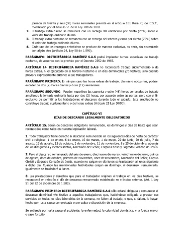 PARÁGRAFO: DISTRIFÁBRICA RAMÍREZ S.A.S podrá implantar turnos especiales de trabajo