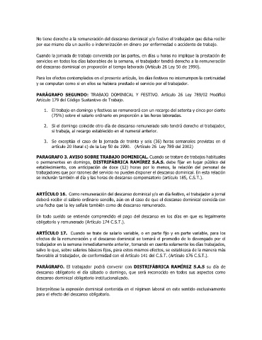 PARÁGRAFO. El trabajador podrá convenir con DISTRIFÁBRICA RAMÍREZ S.A.S su día de