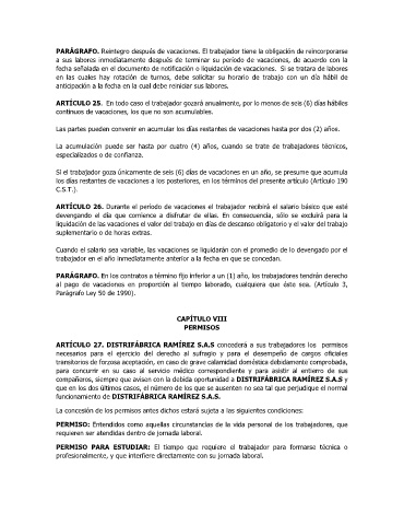ARTÍCULO 27. DISTRIFÁBRICA RAMÍREZ S.A.S concederá a sus trabajadores los permisos